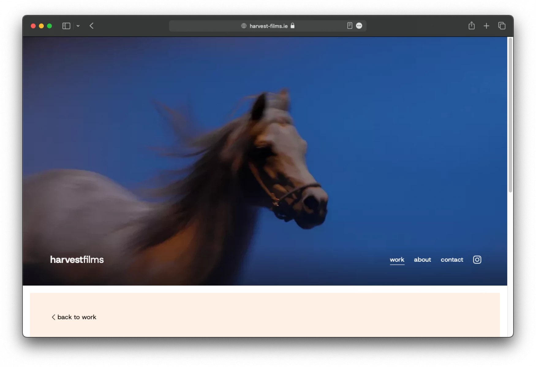harvest-films.ie is a CMS driven site built using Laravel. To echo the palette and style of Pat and Sharon's work I used muted natural colours and lots of spacing